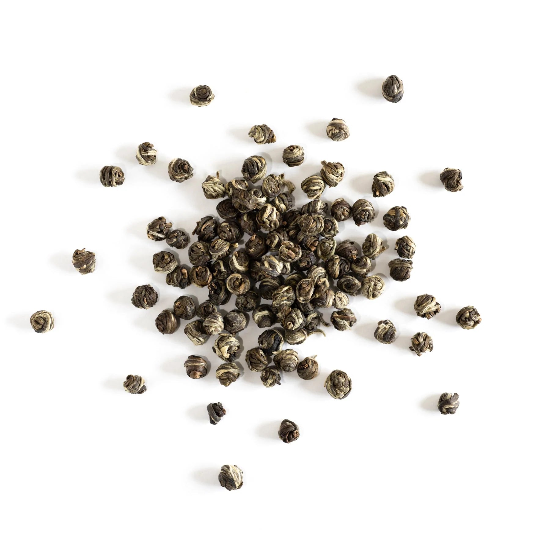 Downy tea leaves and buds infused with jasmine flowers and hand rolled into delicate pearls. They unfurl over multiple infusions, yielding an exquisitely aromatic experience.
